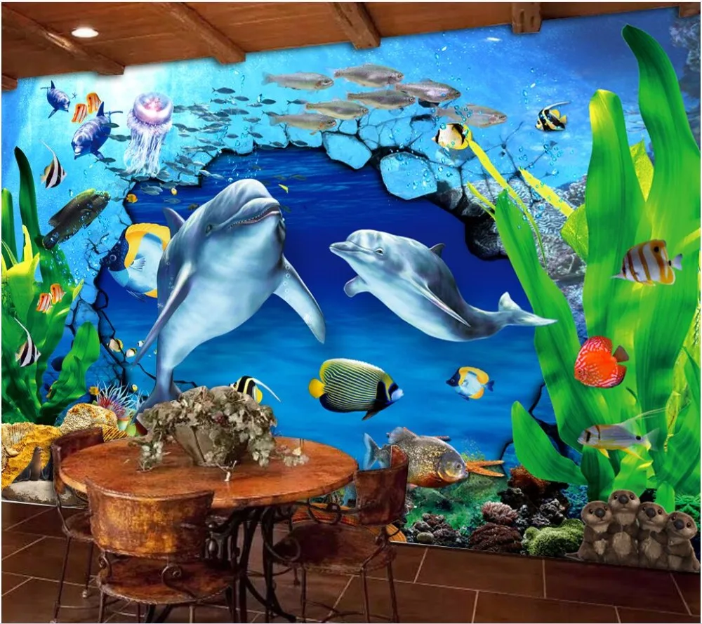 Custom mural photo 3d wallpaper Dolphin Underwater World from www.aliexpress.com